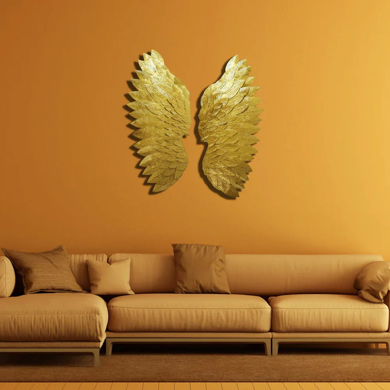 It is time to transfer your space with the most beautiful metal work as seen in our angel wings metal wall art for wall decor. A work of complete elegance and sophistication, this gorgeous piece of home decor has been designed to provide you with an abstract feature in the form of natural elements. The best part about this angel wings metal wall art for wall decor is the intricate detailing that is found in the entire structure. The beautiful golden sculpting on the angel wings metal wall art for wall decor has been designed to provide you with a touch of nature. It also symbolises the elements of freedom, beauty and regal beauty. Our angel wings metal wall art for wall decor has been made from the most premium quality of metal, and is built for durability. The best part about this angel wings metal wall art for wall decor is that it is very lightweight and will not have much impact on your walls. Our angel wings metal wall art for wall decor comes in a beautiful golden colour that is designed to match every kind of home aesthetics. These will definitely become the statement peace of your home and will look amazing in your living room walls. The humongous size of the angel wings will make it a statement piece of decor, wherever you add them. This will also act as a great choice for wedding gifts, and make for a stunning gift choice.