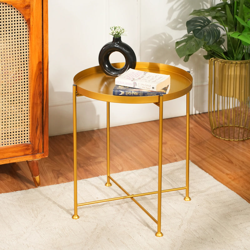 - This Golden tray top side table is a space saving ensign, making it perfectly functional for homes.