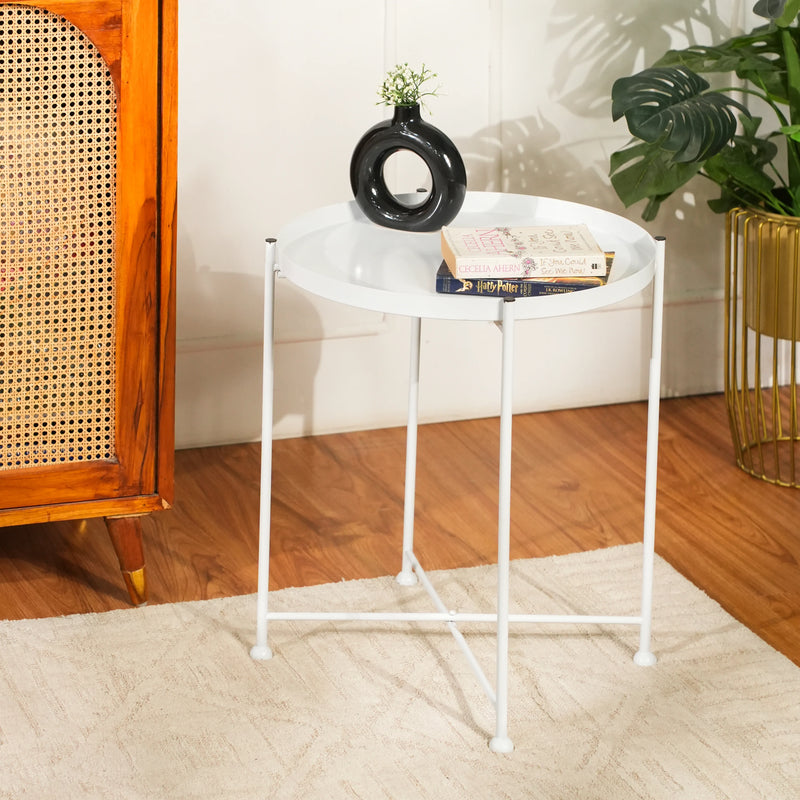 - Compact Beauty: Our white tray top side table h=comes in a compact design that is perfect for small spaces.